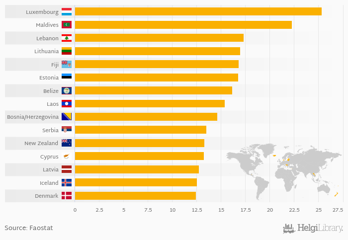 | Luxembourg | kg | 25.1 | 24.7 | 24.6 | 24.9 | 23.2 | ||||||||||||||||