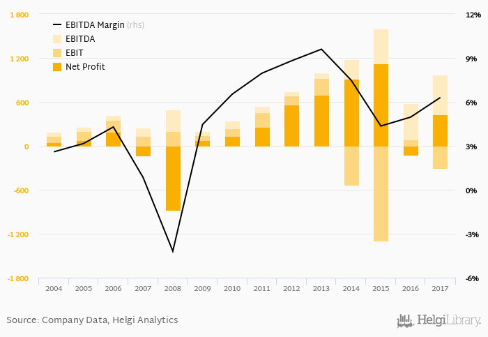 Historically, between 2004 - 2017, the firm’s net profit reached a high of CZK 1,128 mil in 2015 and a low of CZK -873 mil in 2008. Since 2012, the firm's net profit has decreased 23.3% or -5.16% a year on average.