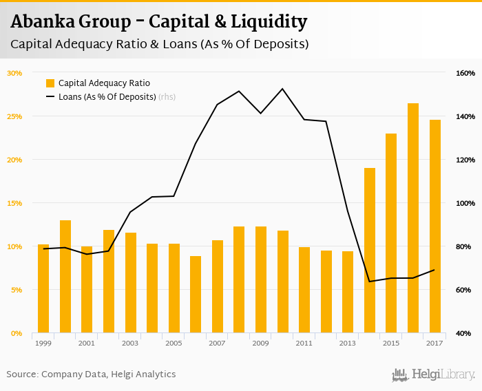 Bank's loan to deposit ratio reached 68.9% at the end of 2017, up from 65.1% when compared to the previous year. Some 10 years ago, loan to deposit ratio of the bank amounted to 145%.