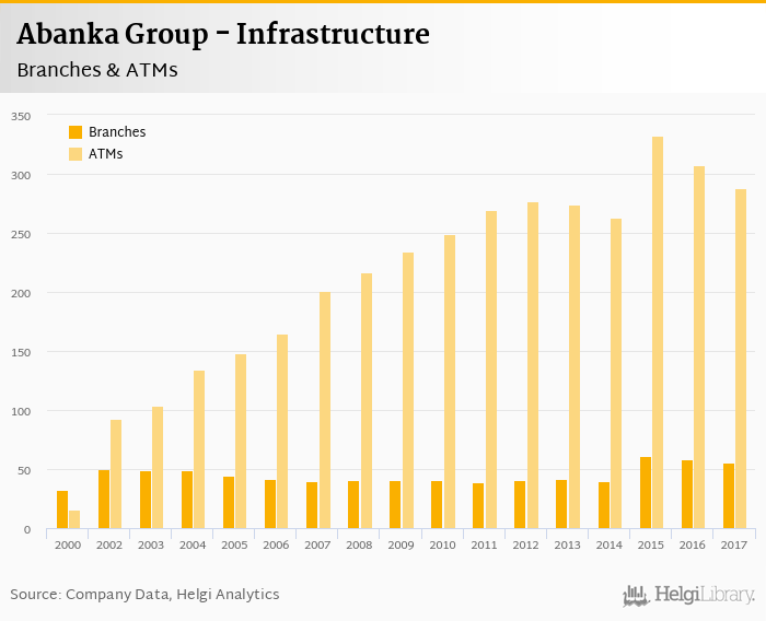 The bank operated a network of 56.0 branches and 288 ATMs at the end of 2017. That's compared to 40.0 branches and 201 ATMs some 10 years ago.