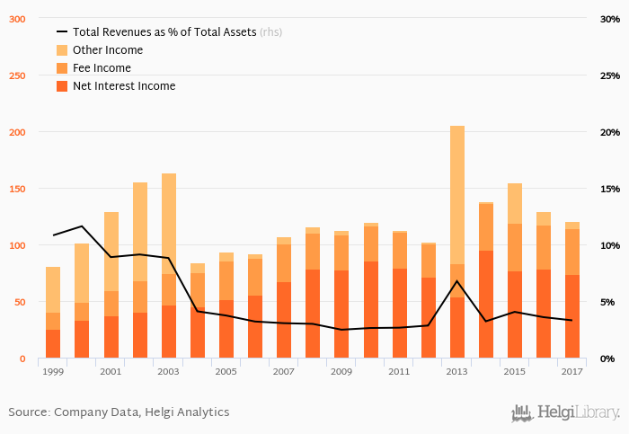 Bank's total revenues accounted for 3.29% total assets in 2017, down from 3.57% a year earlier.
