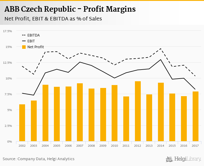 ABB Czech Republic made a net profit of CZK 1,169 mil with revenues of CZK 14,773 mil in 2017, up by 12.4% and up by 2.13%, respectively, compared to the previous year.