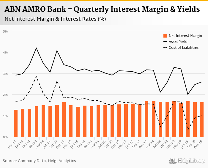 ABN AMRO Bank's net interest margin amounted to 1.64% in the fourth quarter of 2019, up from 1.64% when compared to the previous quarter.