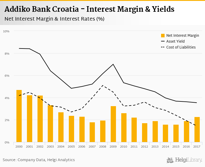Addiko Bank Croatia's net interest margin amounted to 2.28% in 2017, up from 1.91% compared to the previous year.