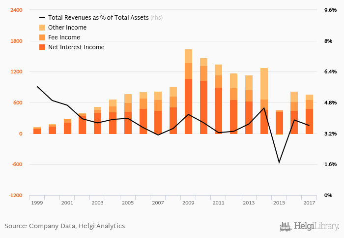 Bank's total revenues accounted for 3.60% total assets in 2017, down from 3.89% a year earlier.