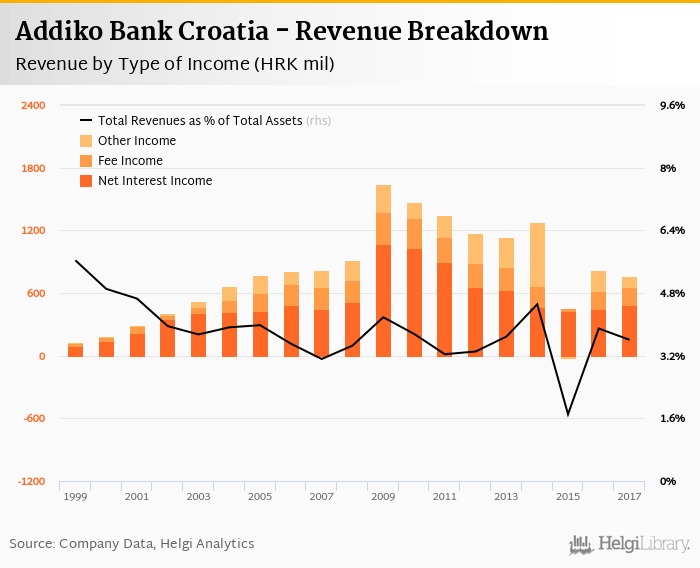 Addiko Bank Croatia generated total banking revenues of HRK 761 mil in 2017, down 6.77% compared to the previous year.
