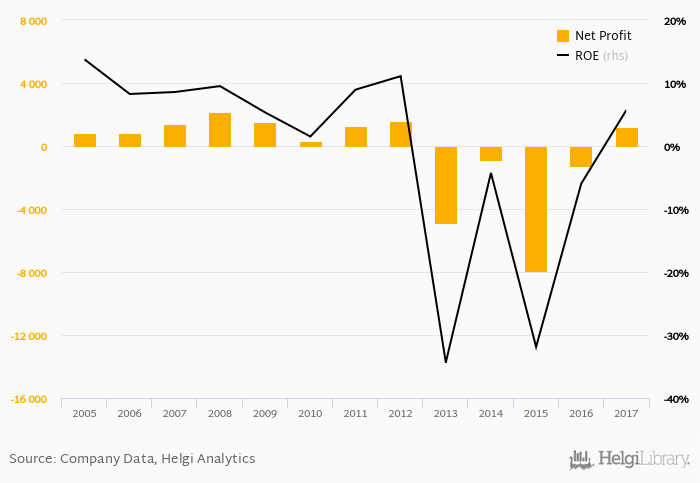 The bank generated its shareholders an average return on equity of -14.2% in the last five years with maximum at 5.71% and minimum at -34.4%