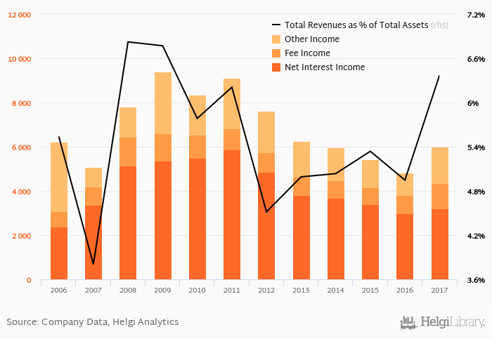 Bank's total revenues accounted for 6.37% total assets in 2017, up from 4.95% a year earlier.