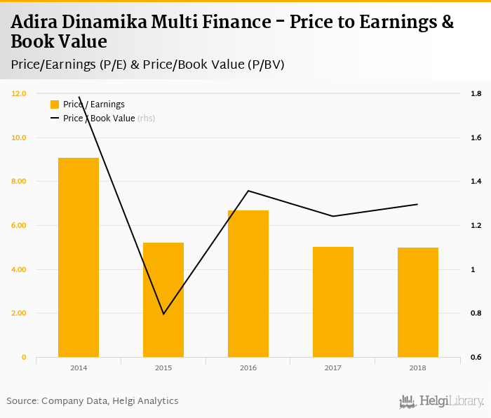 Adira Dinamika Multi Finance stock traded at RUB 9,100 per share at the end 2018 implying a market capitalization of USD 672 mil.