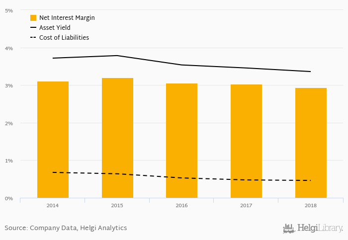 Historically, the bank’s net interest margin reached an all time high of 3.20% in 2015 and an all time low of 2.94% in 2018. The average margin in the last five years amounted to 3.07%.