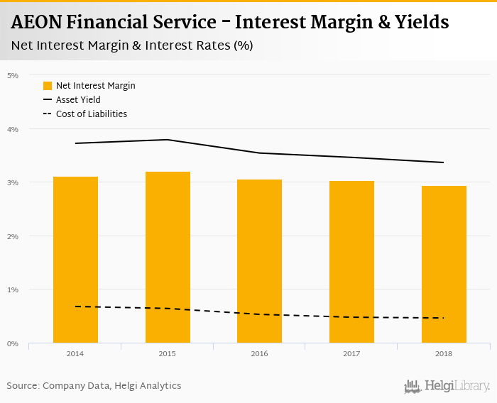 AEON Financial Service's net interest margin amounted to 2.94% in 2018, down from 3.02% compared to the previous year.