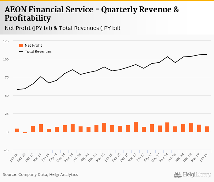 AEON Financial Service made a net profit of JPY 7.20 bil under revenues of JPY 106 bil in the second quarter of 2019, down 2.74% and up 11.9% respectively when compared to the same period last year.