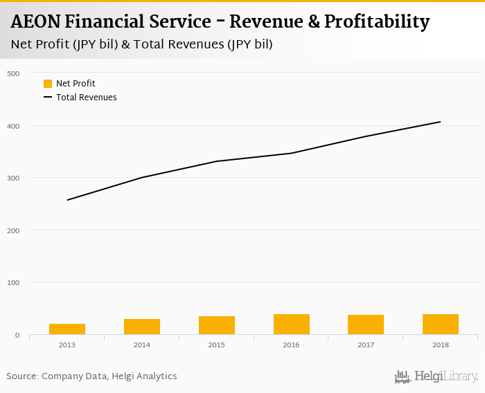 AEON Financial Service made a net profit of JPY 39.4 bil under revenues of JPY 406 bil in 2018, up 1.89% and 7.38% respectively compared to the previous year.