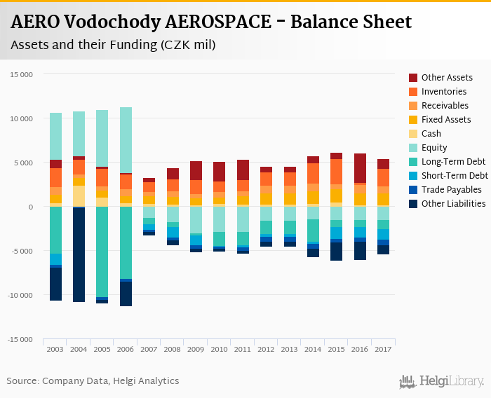 AERO Vodochody AEROSPACE's total assets reached CZK 5,385 mil at the end of 2017, down 10.6% compared to the previous year.
