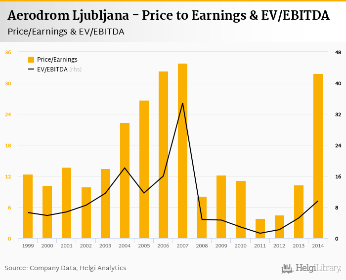 Aerodrom Ljubljana stock traded at EUR 59.0 per share at the end 2014 translating into a market capitalization of USD 138 mil.