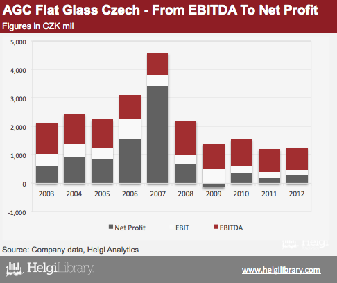 Since the record 2007 year, the Company's profitability has been declining. In 2012, the Company's EBITDA and net profit reached only 55% and 32% of the average seen in the last decade.