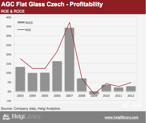 Since the record 2007 year, the Company's profitability has been declining. In 2012, the Company's EBITDA and net profit reached only 55% and 32% of the average seen in the last decade.