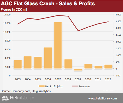 The Company reached a net profit of CZK 302 mil in 2012, a third of the average seen in 2007-2011.