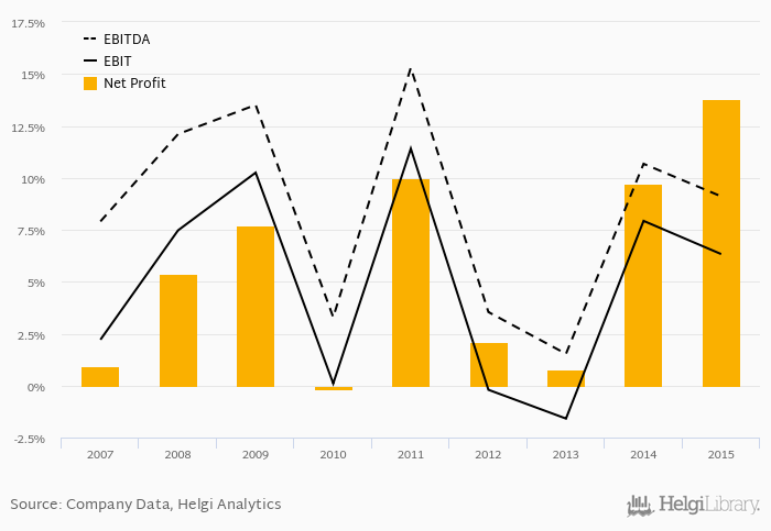 On the operating level, the EBITDA margin reached 9.11% and EBIT amounted to 6.33% of sales in 2015.
