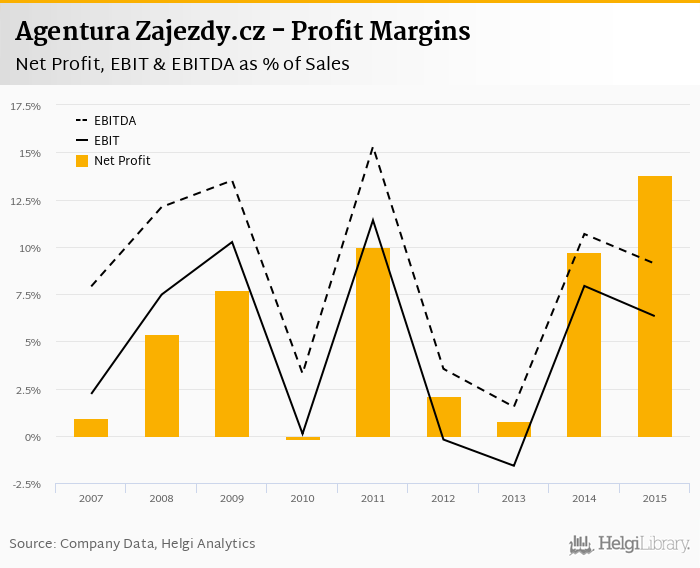 Agentura Zajezdy.cz made a net profit of CZK 7.91 mil with revenues of CZK 57.3 mil in 2015, up by 33.5% and down by 6.26%, respectively, compared to the previous year.