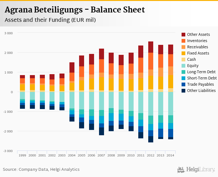Agrana Beteiligungs's total assets reached EUR 2,407 mil at the end of 2014, up 0.614% compared to the previous year.