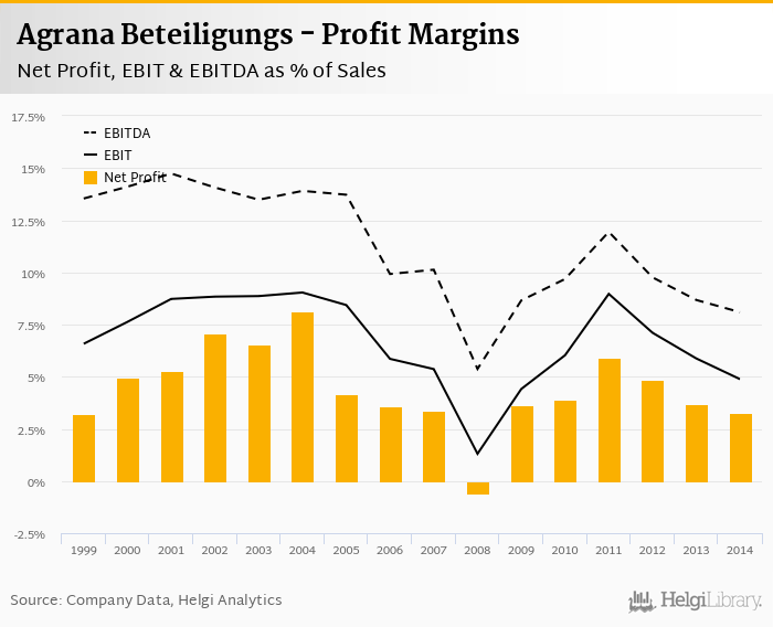 On the operating level, the EBITDA margin reached 8.09% and EBIT amounted to 4.88% of sales in 2014.