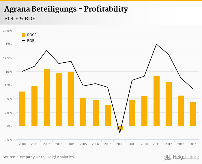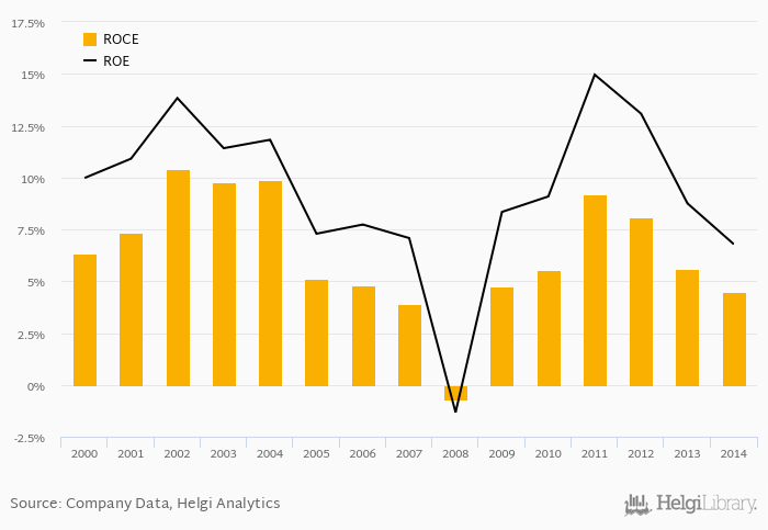 The result implies a return on equity of 6.78% and a return on invested capital of 4.48% in 2014. That is compared to an average of 10.5% and 6.57% over the last five years.