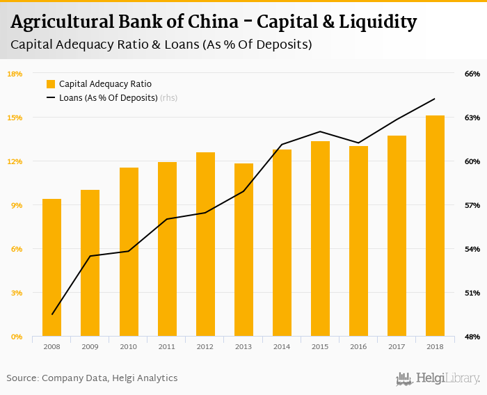 Agricultural Bank of China's capital adequacy ratio reached 15.1% at the end of 2018, up from 13.7% compared to the previous year. Historically, the bank’s capital ratio hit an all time high of 15.1% in 2018 and an all time low of 9.41% in 2008.