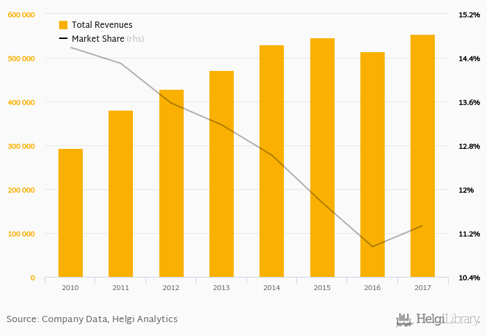 Agricultural Bank of China generated total banking revenues of CNY 553,962 mil in 2017, up 7.67% compared to the previous year.