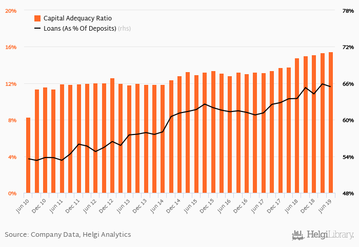 Bank's loan to deposit ratio reached 65.4% at the end of 2Q2019, up from 63.5% when compared to the same period of last year.