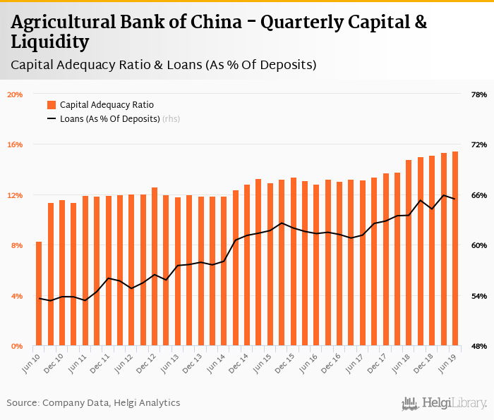Agricultural Bank of China's capital adequacy ratio reached 15.5% at the end of second quarter of 2019, up from 15.3% when compared to the previous quarter. Historically, the bank’s capital ratio hit an all time high of 15.5% in 2Q2019 and an all time low of 8.31% in 2Q2010.