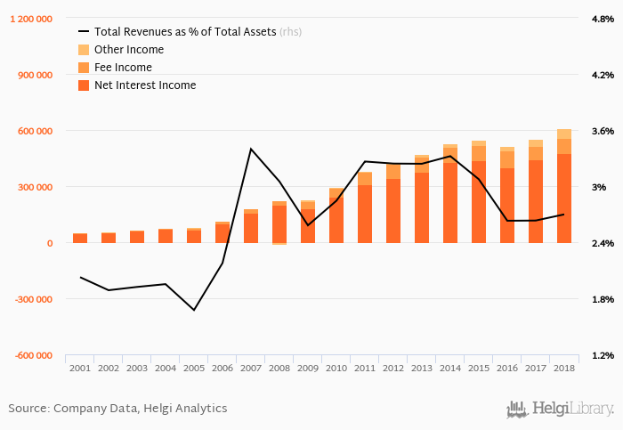 Bank's total revenues accounted for 2.70% total assets in 2018, up from 2.63% a year earlier.