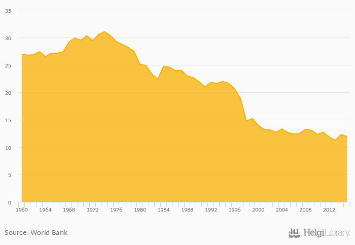 | Laos | % | 35.0% | 32.7% | 29.5% | 28.1% | 26.5% | ||||||||||||||||