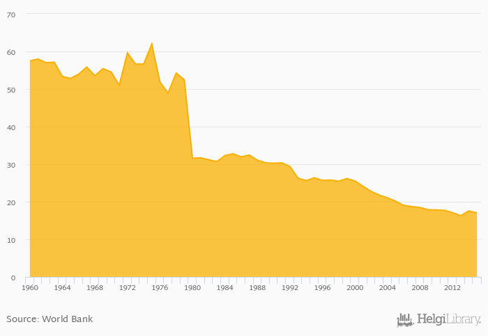| Laos | % | 35.0% | 32.7% | 29.5% | 28.1% | 26.5% | ||||||||||||||||