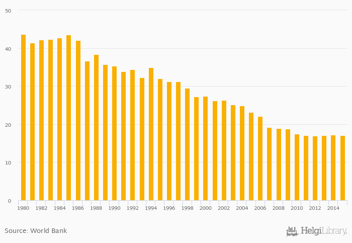 | Bangladesh | % | 17.9% | 17.8% | 17.7% | 17.1% | 16.3% | ||||||||||||||||