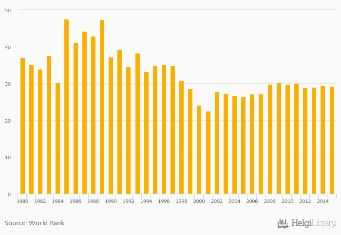 | Kenya | % | 26.1% | 27.8% | 29.3% | 29.2% | 29.5% | ||||||||||||||||