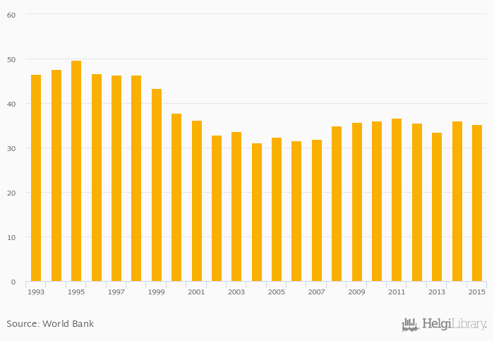| Laos | % | 35.0% | 32.7% | 29.5% | 28.1% | 26.5% | ||||||||||||||||