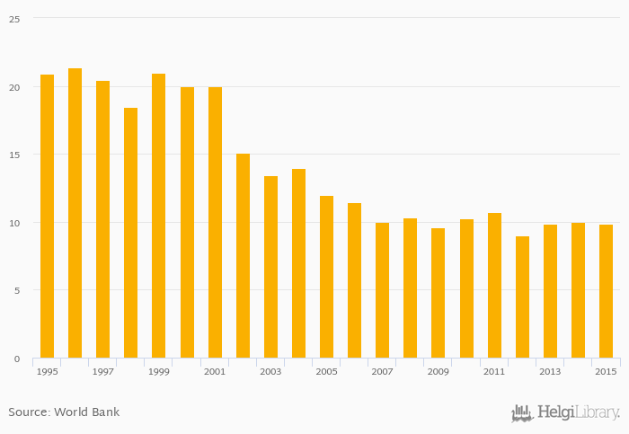 | Agriculture, Value Added (As % of GDP) | Unit | 1995 | 1996 | 1997 | 1998 | 1999 | 2000 | 2001 | 2002 | 2003 | 2004 | 2005 | 2006 | 2007 | 2008 | 2009 | 2010 | 2011 | 2012 | 2013 | 2014 | 2015 |