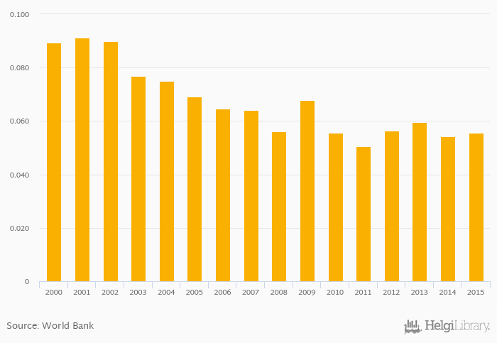 | Agriculture, Value Added (As % of GDP) | Unit | 1995 | 1996 | 1997 | 1998 | 1999 | 2000 | 2001 | 2002 | 2003 | 2004 | 2005 | 2006 | 2007 | 2008 | 2009 | 2010 | 2011 | 2012 | 2013 | 2014 | 2015 |