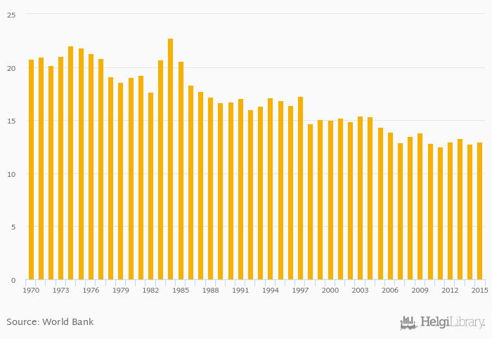 | Bolivia | % | 13.8% | 12.9% | 12.5% | 13.0% | 13.3% | ||||||||||||||||
