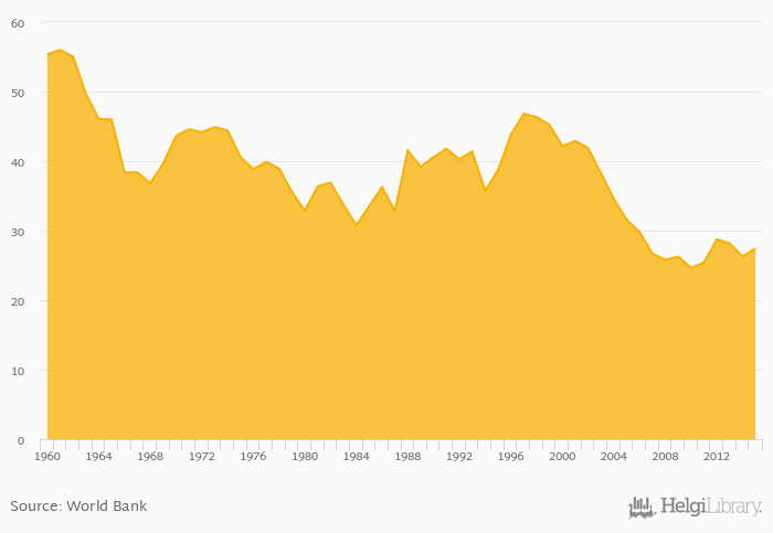 Historically, value added of agriculture as a share of GDP in Sudan reached an all time high of 56.0% in 1961 and an all time low of 24.6% in 2010.