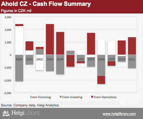 Sales of Ahold Česká republika exceeded CZK 40 bil again in 2011. This is 40% more than in 2002. When looking at the long-term profit development, however, Czech subsidiary is clearly not the entity where profits are booked. A loss of nearly CZK 5 bil has been booked in 2005-2011
