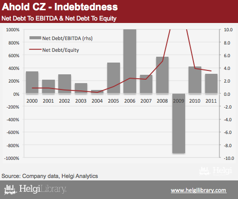 Sales of Ahold Česká republika exceeded CZK 40 bil again in 2011. This is 40% more than in 2002. When looking at the long-term profit development, however, Czech subsidiary is clearly not the entity where profits are booked. A loss of nearly CZK 5 bil has been booked in 2005-2011