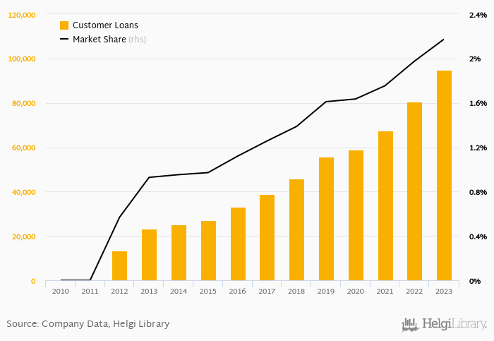 Air Bank accounted for 2.17% of all customer loans issued in Czechia at the end of 2023. Historically, the bank’s market share in customer loans reached an all time high of 2.17% in 2023 and an all time low of 0% in 2010.