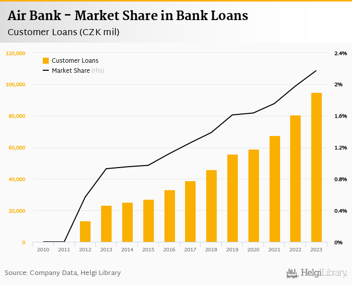 Air Bank's customer loans reached CZK 94,710 mil in 2023, up 17.7% compared to the previous year.