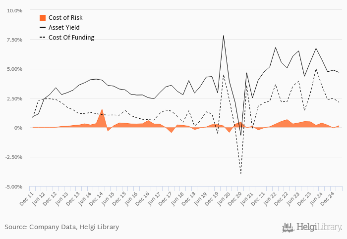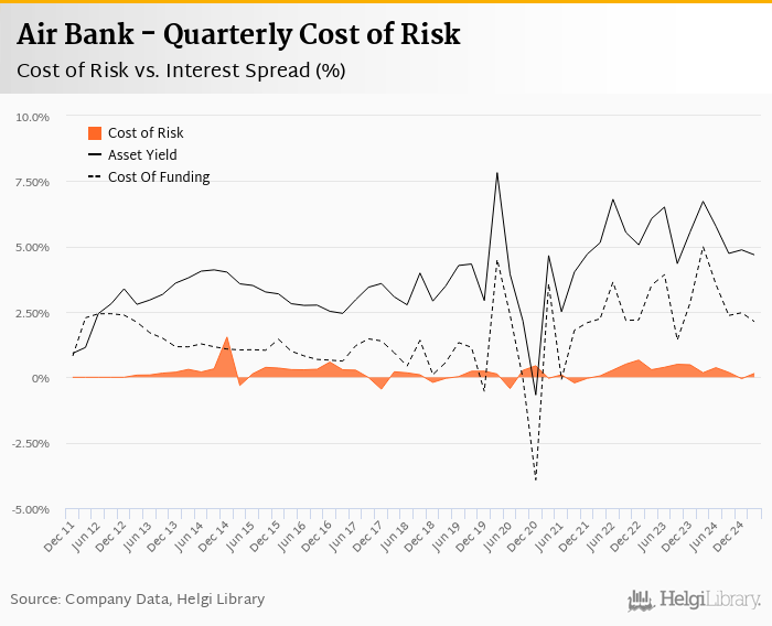 Air Bank's Cost of Risk (loan loss provisions as % of total assets) amounted to 0.149% in the first quarter of 2025, up from -0.052% when compared to the previous quarter.