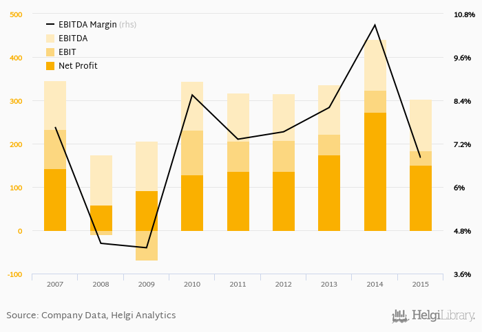 Historically, between 2007 - 2015, the firm’s net profit reached a high of CZK 273 mil in 2014 and a low of CZK 58.4 mil in 2008. Since 2010, the firm's net profit has increased 18.2% or 3.40% a year on average.
