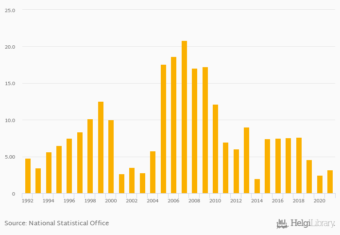 Historically, alcoholic beverage consumption per capita in Latvia reached an all time high of 20.8 litres in 2007 and an all time low of 2.00 litres in 2014. When compared to Latvia's main peers, alcoholic beverage consumption per capita in Belarus amounted to 14.5 litres, 20.4 litres in Estonia, 8.13 litres in Lithuania and 7.91 litres in Russia in 2021.