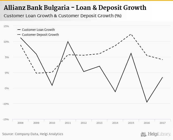 At the end of 2017, Allianz Bank Bulgaria's loans accounted for 51.3% of total deposits and 46.7% of total assets.