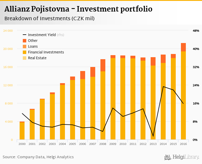 Allianz Pojistovna's total investments reached CZK 21,254 mil at the end of 2016, up 12.6% when compared to the previous year.